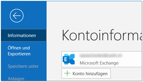 Wird Outlook bereits für das private Konto verwendet, oben links auf «Datei» klicken und auf «Konto hinzufügen» klicken: